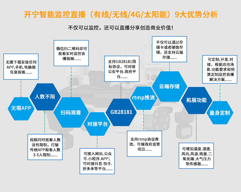 3、不仅可以监控录像,还可以实时监控直播分享创造更多商业价值;