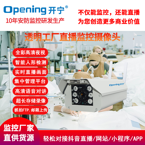 开宁视讯结合自身研发技术优势,推出了开宁直播监控摄像头系列产品,为更多的传统工厂打造“透明工厂”,提高知名度,带来更多的客户,创造更多的商业价值!