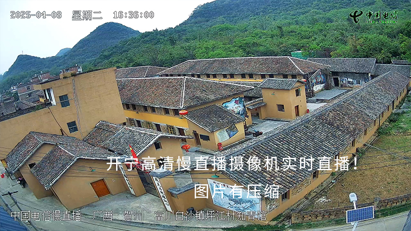 广西贺州富川瑶族自治县平江村,一座青砖黛瓦的知青馆静静矗立。馆舍的马头墙勾勒出古朴轮廓,墙面上“广阔天地,大有作为”的标语历经风雨仍鲜红醒目,门廊下的老木柱、窗棂上的简易雕花,都承载着一代人的青春记忆。作为当地红色文旅的核心地标,知青馆虽底蕴深厚,却因地处乡村,其独特的建筑风貌与历史韵味难以被远方游客知晓。为打破地域阻隔,当地文旅部门联合中国电信与开宁科技,以开宁高清全彩慢直播摄像机为核心,搭建知青馆外观实时慢直播体系,让这座红色建筑的风采通过镜头触达全国。