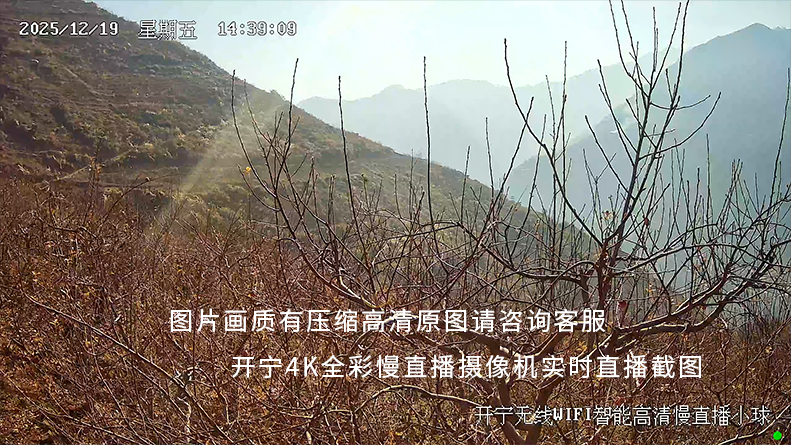 结合四川雅安苹果种植园户外开阔、地形复杂、网络部署受限的场景特性,以及传统推广模式难以直观呈现种植品质的核心痛点,开宁为其定制了专属4G高清果园慢直播解决方案。方案核心设备4G高清慢直播智能球机无需复杂布线施工,依托4G网络即可实现稳定数据传输,适配果园户外复杂环境;具备全域覆盖与超高清画质优势,可精准捕捉苹果生长状态、种植作业流程等关键场景;同时支持多平台同步推流,能够将直播画面无缝对接至电商平台、官方新媒体等传播渠道,实现种植过程实时对外展示。